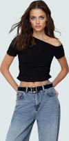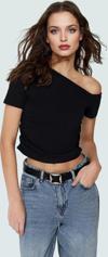 PayBuy Crop Kısa Kollu Örme Bluz Asimetrik Yaka Günlük Stil Uzun Ömürlü Konforlu Kesim Mükemmel Uyum