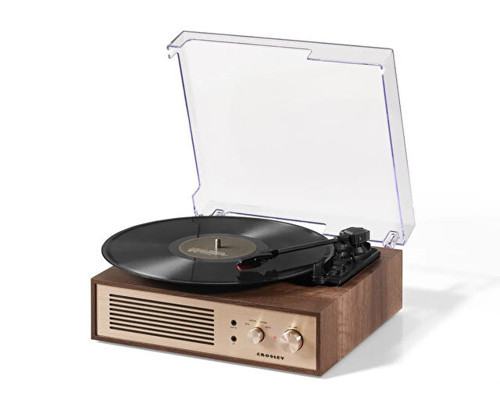 Crosley markasının şıklığı ve zarafetiyle tasarlanan bu pikap, kahverengi rengiyle dikkat çeker.