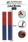 ArtMaster Çubuk Mıknatıs 2 Adet Deney Malzemesi Kırmızı Mavi Boyalı Okul Projeleri İçin I Şekilli Manyetik Çubuk Mıknatıs