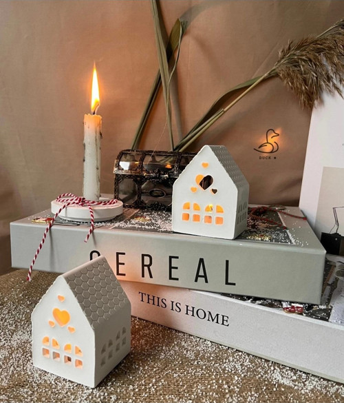 • Casa di Duck Özel Tasarımı: Kalp pencereli ve çukur formdaki mini ev görünümlü bu iki parçalı mum kavanozu, dekorasyonunuza sıcak, romantik ve modern bir dokunuş katar.