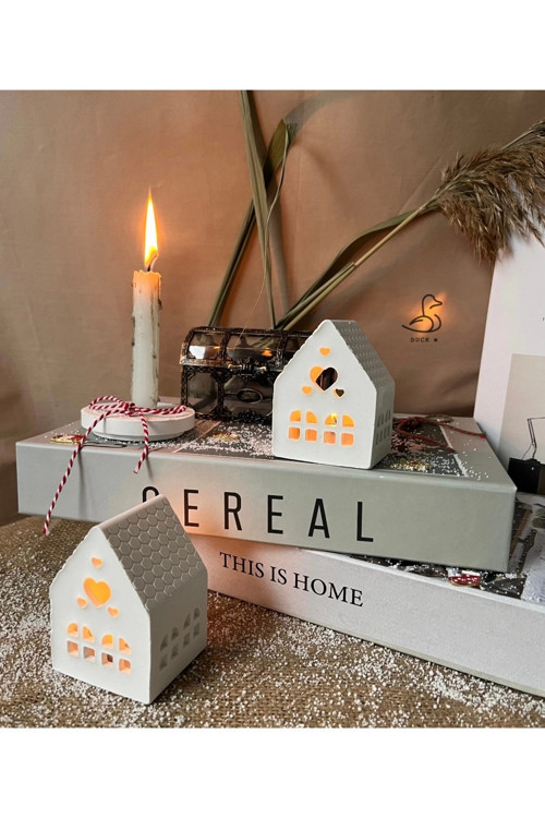 • Casa di Duck Özel Tasarımı: Kalp pencereli ve çukur formdaki mini ev görünümlü bu iki parçalı mum kavanozu, dekorasyonunuza sıcak, romantik ve modern bir dokunuş katar.