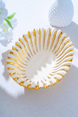 Roy King ROYKİNG LINE GOLD YAPRAK SUNUM TABAK ORTA 25-25