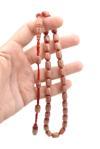 Kehribar taşı kullanılarak üretilmiş, doğal ve otantik bir görünüm sunar; Katelin materyali sayesinde dayanıklı ve uzun ömürlü kullanım vaat eder; Çift çekim kapsül kesim tasarımı ile modern ve şık bir görünüm sağlar; Eskitme bej rengi, klasik ve zamansız bir estetik sunarak her kıyafetle uyum sağlar;