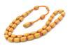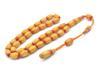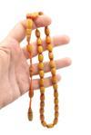 Kehribar taşı kullanılarak üretilmiş, doğal ve otantik bir görünüm sunar; Katelin materyali sayesinde hafif ve dayanıklı bir yapıya sahiptir, uzun süreli kullanım için idealdir; Çift çekim kapsül kesim tasarımı ile modern ve şık bir görünüm kazandırır; Sarı renk tonuyla dikkat çeken bu tesbih, estetik ve zarif bir aksesuar olarak öne çıkar;