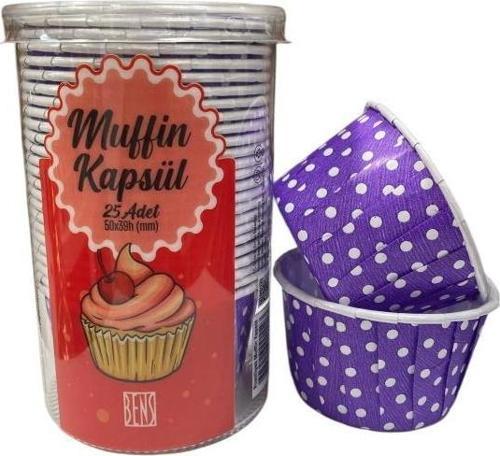 Cupcake/Muffin /Suffle Kek Kapsülü Mor Puantiyeli 25 li