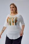 Curvy Trend Büyük Beden Bohem Kelebek Baskılı Yarım Kol Yan Yırtmaç Bluz