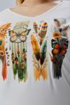 Curvy Trend Büyük Beden Overthink Baskılı Geniş V Yaka Kısa Kol Oval Yırtmaç Bluz - Image 1
