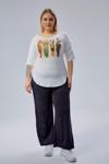 Curvy Trend Büyük Beden Flamingo Baskııl Yarım Kol Yan Yırtmaç Bluz - Image 1