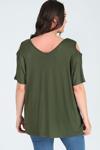 Büyük Beden Breathe Baskılı Omuzu V Pencere Kısa Kol Bluz