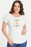 Curvy Trend Büyük Beden Dragonfly Baskılı Geniş V Yaka Kısa Kol Oval Yırtmaç Bluz
