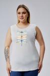Curvy Trend Büyük Beden Dragonfly Baskılı Kolsuz Viskon Basic Bluz