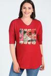 Trend büyük beden, baskılı geniş v yaka kısa kol oval yırtmaç bluz, günlük kullanımda şıklığınızı tamamlamanızı sağlayacak zarif bir tasarıma sahiptir..