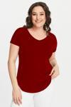 V yaka tasarımı ile feminen çizgileri ön plana çıkaran bu bluz, büyük beden kalıbıyla rahat hareket etme imkanı verir..