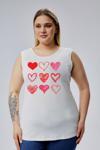 Curvy Trend Büyük Beden Kalpler Baskılı Kolsuz Viskon Basic Bluz