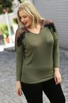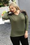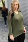 Haki rengi ve çiçekli deseniyle göz alıcı bir görünüm kazandırır..