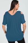 Moda Berray 4050 Petrol Taşlı Pelerinli Şifon Büyük Beden Şık Bluz