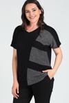 Trend büyük beden tasarımıyla dikkat çeken bu kısa kol bluz, modern ve şık bir görünüm sunar..