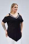 Standart boyu ve siyah rengiyle kolayca kombinlenebilen bu bluz, her gardıropta temel parça olarak yerini alır.
