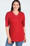 Curvy Trend Büyük Beden Geniş V Yaka Yarım Kol Oval Yırtmaç Bluz - Image 1