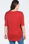 Curvy Trend Büyük Beden Geniş V Yaka Yarım Kol Oval Yırtmaç Bluz