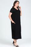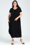 Curvy Trend Regular Fit Kısa Kollu Baskısız Siyah Likralı Pamuk Tişört Elbise