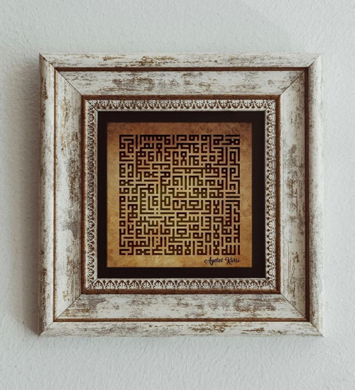 CVC WOOD Kufi Ayetel Kürsi Çerçeveli Taş Tablo , Çerçeveli Taş Duvar Dekoru