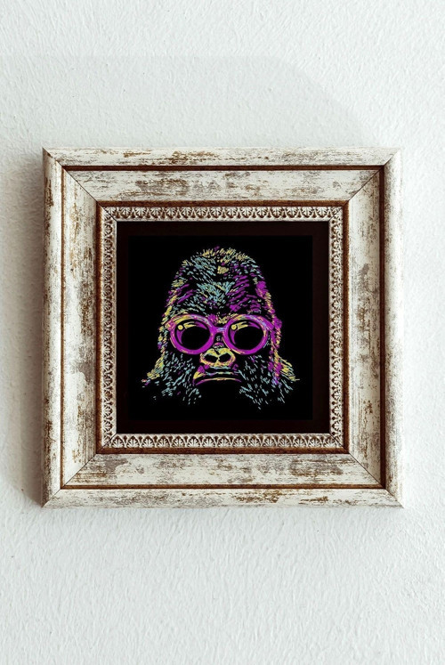 CVC WOOD Soyut Çalışma Renkli Goril Çerçeveli Taş Tablo , Çerçeveli Taş Duvar Dekoru-enkcrcvtbl-00096