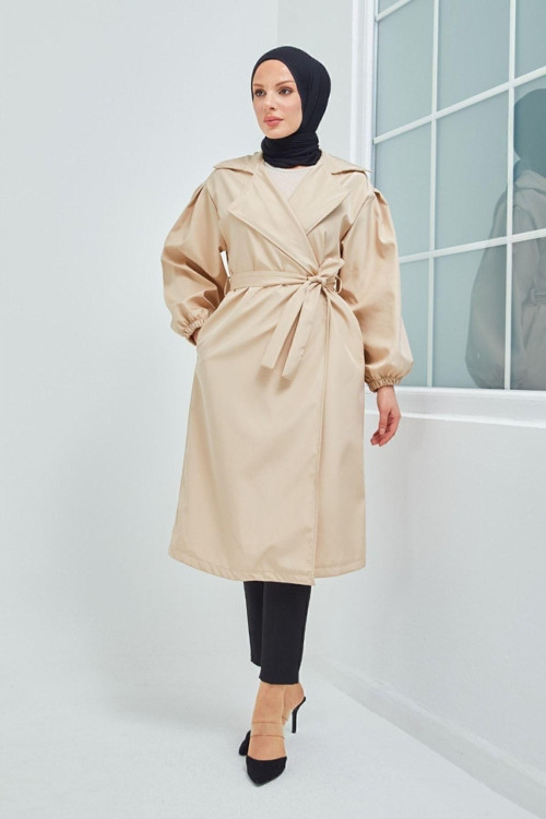 Belden Bağlamalı Balon Kol Trençkot