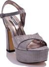 DZA07-337350 Platin Simli Tek Bant Platform Topuklu  Kadın Ayakkabı