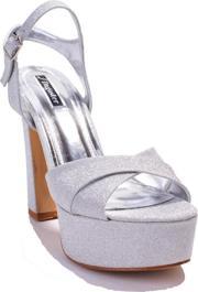 Dagoster DZA07-337350 Platin Simli Tek Bant Platform Topuklu Kadın Ayakkabı