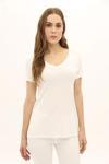 Detay: V yaka, pamuklu ve kısa kollu basic kadın t-shirt, gardıropların vazgeçilmez parçalarından biridir. Nefes alabilir pamuklu kumaşı sayesinde yaz aylarında ferah bir kullanım sunarken, sade ve minimalist tasarımı sayesinde her tür kombinle kolayca uyum sağlar. Günlük stilin bir parçası olabileceği gibi, aksesuarlarla tamamlanarak daha şık bir görünüm de elde edilebilir. İşlevselliği ve konforu bir arada sunan bu t-shirt, zamansız bir stilin anahtarıdır;