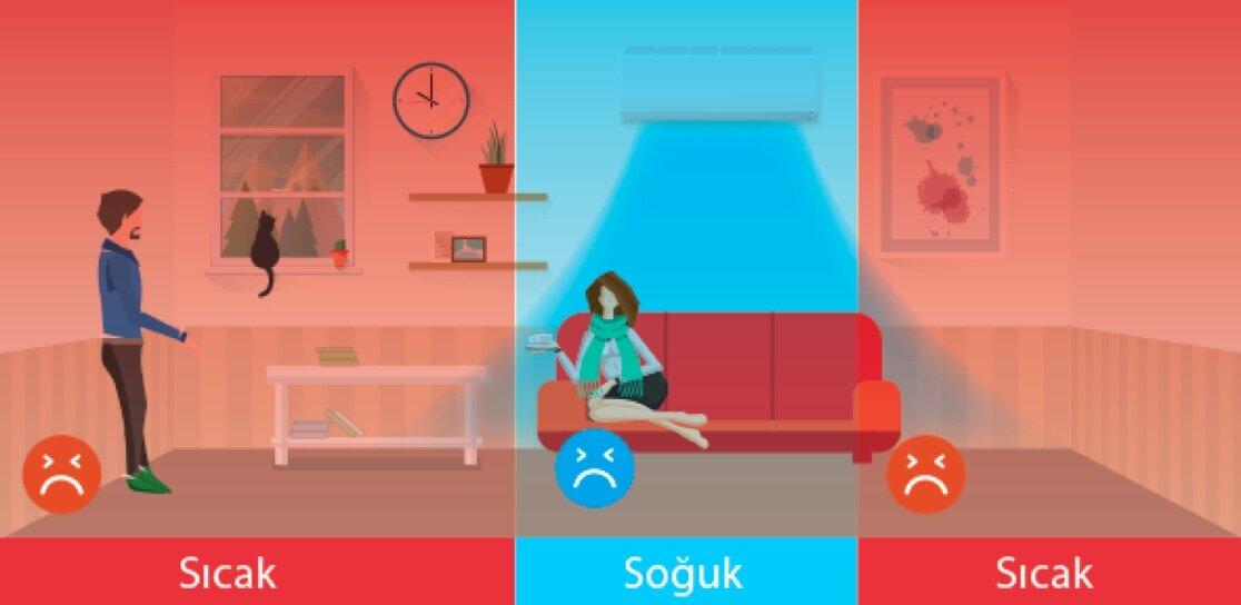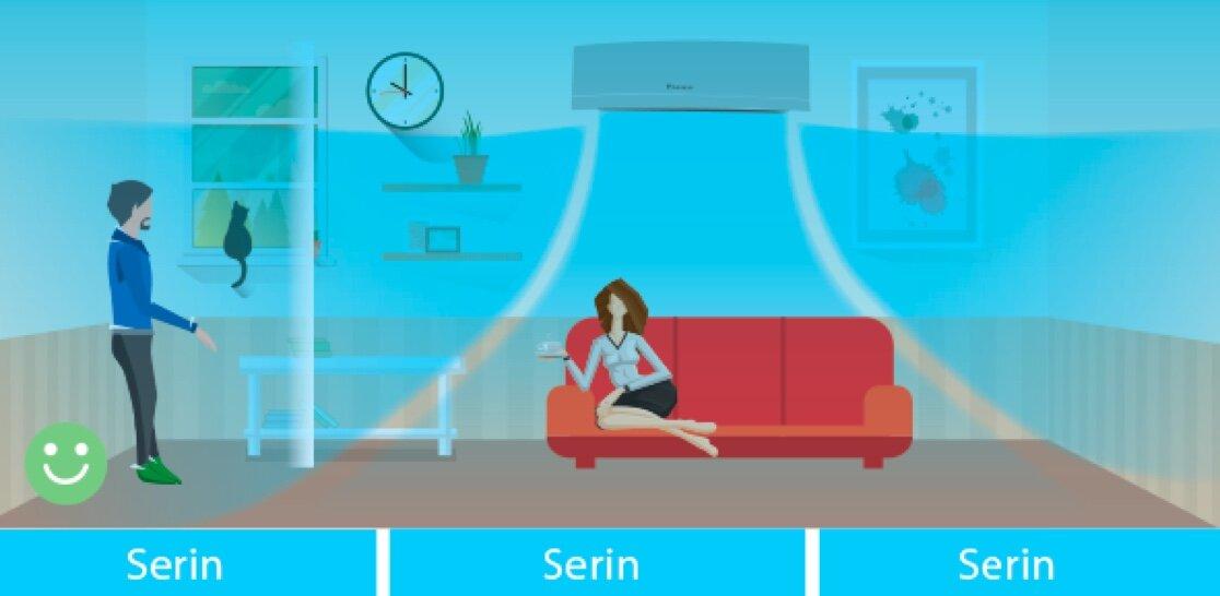 Yatay ve dikey kanatlar sırasıyla otomatik olarak hareket eder. 3 boyutlu hava üfleme sistemi, odanın her yerine sıcaklığı eşit dağıtır.