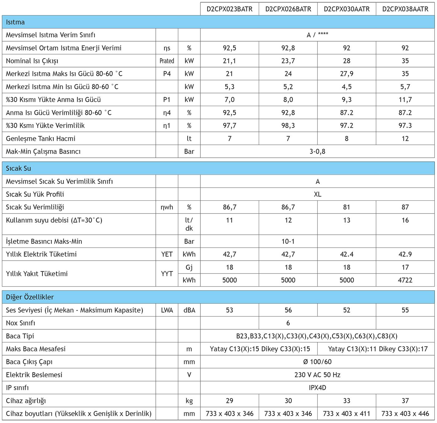 Premix VZ 30 kW (D2CPX030) | Tam Yoğuşmalı Kombi Teknik Bilgileri