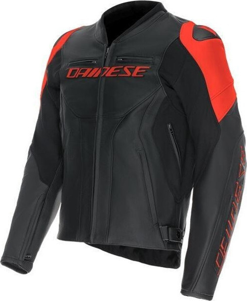 Dainese Racing 5 Mont, sportif motosiklet sürüşünün gerektirdiği üstün korumayı, esnekliği ve agresif bir kesimi birleştirir. **Siyah, Kırmızı ve Neon Fluo** tonlarının çarpıcı kombinasyonu, yüksek görünürlük ve dinamik bir estetik sunar.