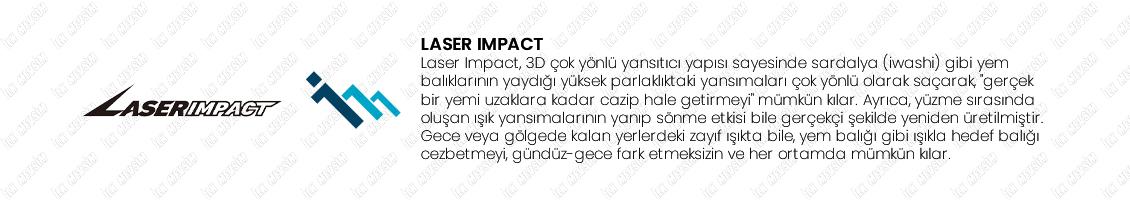 Laser Impact, 3D çok yönlü yansıtıcı yapısı sayesinde sardalya (iwashi) gibi yem balıklarının yaydığı yüksek parlaklıkta ışığı çok yönlü olarak saçar ve böylece "gerçek bir yemin cazibesini uzak mesafelere" taşır.