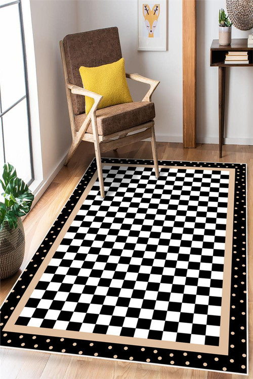 Dama Desenli Modern Dijital Baskılı Yıkanabilir Kaymaz Halı