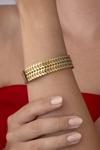 Doğanın zarif dokusunu modern şıklıkla buluşturan altın kaplama çelik kelepçe bilezik, bileğinize göz alıcı bir ışıltı kazandırıyor. Dayanıklı paslanmaz çelik üzerine uygulanan altın kaplama, uzun süreli kullanımda bile ilk günkü parlaklığını koruyarak zamansız bir şıklık sunar.