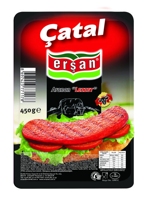%100 dana etinden üretilen ERŞAN Dana Çatal Sucuk tadı, kokusu ve lezzeti ile sadece sabah kahvaltılarının değil haftanın her günü tüketmek isteyeceğiniz lezzete sahiptir. Türk Gıda Kodeksine göre üretilen doyurucu, lezzetli ve sağlıklı ERŞAN Dana Çatal Sucuk Anadolu’dan gelen özel baharatlarla lezzetlendirilmiş hiçbir yerde bulamayacağınız tadı masalarınıza taşıyor.
