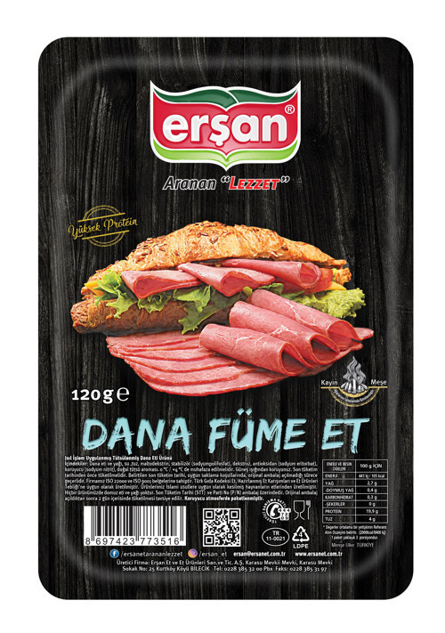 Erşan Füme Et, dana etinin fazla yağlarının ve sinirlerinin alınarak, özel dumanlama fırınlarında pişirilmesiyle üretilmektedir. Isıl işlem uygulandıktan sonra sofralarınıza ulaşana dek soğuk zincir bozulmadan sizlere ulaşımını sağlamaktayız. Üretimin her aşamasında uzman ekibimizce tüm kontroller yapılmaktadır.