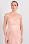 Detay: Zarif detaylarıyla öne çıkan bu maxi abiye elbise, hafif simli tül kumaşıyla gece ışıklarında büyüleyici bir parıltı sunar. Sırttan bağlamalı tasarımıyla özgün bir stil kazandırırken, yandan yırtmaçlı kesimi feminen bir duruş yaratır. Astarlı yapısı sayesinde konforlu bir kullanım sağlarken, fermuar kapamalı tasarımı pratik giyilebilirlik sunar. Uzun boyu ile özel davetlerde etkileyici bir görünüm arayanlar için ideal bir tercih olan bu elbise, zarafeti ve modern şıklığı bir arada sunar;