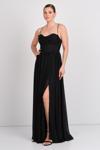 Kadın Balenli Drapeli Straplez Maxi Abiye Elbise 1771 Siyah