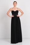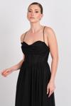 Dans Kadın Balenli Drapeli Straplez Maxi Abiye Elbise 1771 Siyah