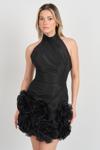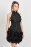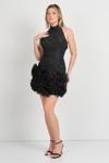 Detay: Sırt detaylı, fermuarlı, saten kumaş ve eteğinde sabit gül süslemeli bu astarlı mini abiye elbise; feminen dokunuşları zarif bir siluetle buluşturuyor. Parlak saten kumaşı ışığı yansıtarak göz alıcı bir etki yaratırken, sırt dekoltesi ve sabit gül detayı elbiseye romantik ve sofistike bir hava katıyor. Mini boy kesimiyle genç ve dinamik bir duruş sergileyen bu model, özel davetlerde ve kokteyllerde stil sahibi kadınların dikkat çeken tercihlerinden biri haline geliyor;