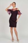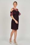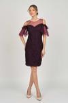 Detay: Kol detaylı, dantel, astarlı abiye elbise;