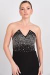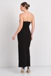 Detay: Zarif detaylarıyla öne çıkan bu midi abiye elbise, straplez kesimiyle omuzları vurgularken göğüs kısmındaki yoğun taş işlemeleriyle göz alıcı bir ışıltı sunar. Yandan yırtmaçlı tasarımı feminen bir duruş kazandırırken, astarlı yapısı konforlu bir kullanım sağlar. Krep kumaşın dökümlü ve şık dokusu sayesinde elbise hem sade hem etkileyici bir görünüm yaratır. Midi boyu ile klasik ve modern şıklığı bir araya getiren bu elbise, özel davetlerde stilinizi ön plana çıkarmak için ideal bir tercihtir;
