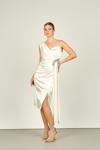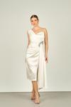 Detay: Yandan yırtmaçlı, bel ve omuz askısı taş süslemeli, bir omuz kalın diğer omuz ip askılı , astarlı, abiye elbise;