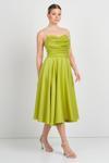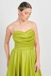 Detay: Saten kumaş, fermuarlı, astarsız, önü drapeli, ip askılı ve ip askısı taşlı, salaş tarz abiye elbise, zarif ve modern duruşuyla özel davetlerde göz alıcı bir stil sunar. Hafif ve dökümlü yapısı sayesinde rahat bir kullanım sağlarken, önü drapeli tasarım hareket katıyor. Taşlı ip askıları ışıltılı bir dokunuş ekleyerek şıklığı ön plana çıkarıyor. Salaş kesimi ile vücut hatlarını doğal şekilde saran bu abiye, minimal ama etkileyici bir görünüm elde etmek isteyenler için ideal bir seçimdir;