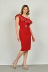 Detay: Tek omuz, fırfırlı, kemer detaylı, midiboy abiye elbise;