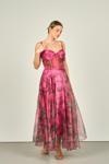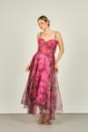 Detay: Askılı, tül detaylı, midiboy abiye elbise;
