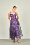 Detay: Askılı, tül detaylı, midiboy abiye elbise;